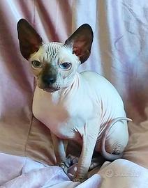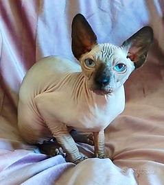 Ultimo maschietto di 6 mesi ELF STRAIGHT ( genetica Elf forma orecchie Sphynx). RAZZA RARA IN ITALIA Carattere super dolce abituato alla lettiera, bagnetto e taglio unghie. Adatto a famiglie con figli o altri animali. Manto completamente nudo, color Seal point occhi azzurri. Molto adatto alla riproduzione perché mantiene in se entrambe le genetiche Elf e Sphynx. ( Prezzo da riproduzione in privato) Verrà ceduto con: -PEDIGREE Internazionale circuito WCF -DOPPIA VACCINAZIONE trivalente valida un anno -DOCUMENTAZIONE DEI GENITORI test HCM , test fiv/felv -CERTIFICATO VETERINARIO DI BUONA SALUTE Piccolo omaggio cibo copertina e giochino. Portiamo in tutta Italia, isole comprese, per tratte molto lunghe , che richiedono aereo o nave chiediamo rimborso spese viaggio. Per qualsiasi curiosità o domanda contattatemi ?