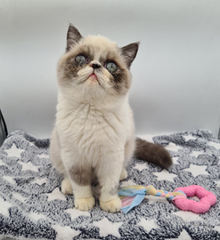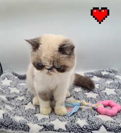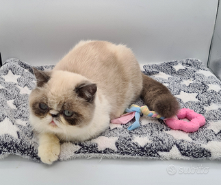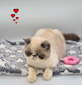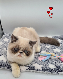 Disponibile presso piccolo allevamento amatoriale riconosciuto ENFI cucciolo di 5 mesi maschio exotic Blue white Point colore particolare detto anche Pandino con occhi azzurro intenso. Si cede con pedegree Enfi doppia vaccinazione e sverminazione pkd felv fiv negativo certificato di buona salute allevato in casa carattere particolarmente dolce affettuoso abituato alla mia cagnolina Chihuahua al uso della lettiera e tiragraffi. Per ulteriori informazioni contatti telefonici consultare la pagina Facebook Tresorpoint Cattery. Barbara