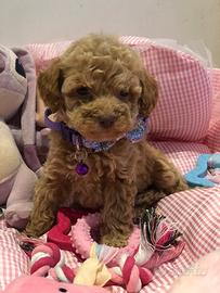 Piccola cucciolo femmina di barboncino toy albicocca, musetto corto ad orsetto di linea americana. Nata e cresciuta in casa da privati e abituata alla traversina. Ha un carattere espansivo, allegra e dolce. E' sverminata, vaccinata, con microchip, libretto sanitario e certificazione veterinaria di perfetta salute. Nata il 29 gennaio, é pronta per andare nella nuova famiglia. Per informazioni, foto e video 3427647960 oppure 339 1055631.