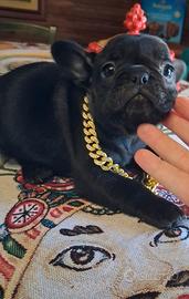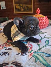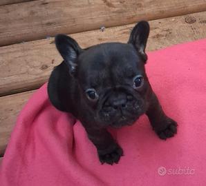 Vendo cucciolo femmina di bulldog francese taglia piccola,colorazione bringee con prevalenza nero e portatrice di blu,nata il 22 Febbraio,soggetto molto bello per morfologia e proporzioni. La cucciola sarà pronta tra circa una settimana con sverminazioni ,primo vaccino e svezzata con crocchette puppy.Questa razza è molto adatta alla vita in appartamento, non abbaia inutilmente, il suo pelo corto e liscio è di facile gestione e si mantiene pulito e il carattere è affettuoso e simpatico e so lega particolarmente alla sua famiglia,va daccordo con i bambini.Affrettatevi a richiederla prezzo 500€ astenersi perditempo e curiosi ,contattare solo se realmente interessati.