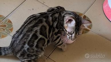 Disponibile questo bellissimo maschietto di gatto bengala di 3 mesi e mezzo colore brown spotted, molto buono e giocherellone dal manto vellutato. Ceduto vaccinato e sverminato . I genitori hanno partecipato a varie expo feline . Per maggiori info e esigenze è graditissimo il contatto diretto telefonico, ci si capisce prima .3517169112 grazie