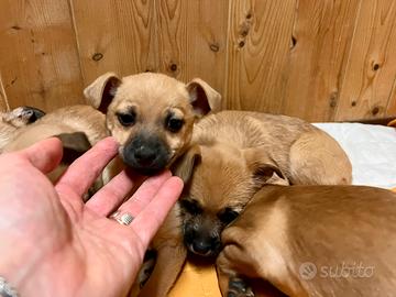 Vendo ultimi tre 3? bellissimi cuccioli di 70 giorni nati da madre incrocio pincher/jack russel pelo ruvido e papà è un volpino italiano puro! I cuccioli sono di taglia piccola sui 8-10 kg da adulto sono una meraviglia!! Hanno eseguito la sverminazione completa andrà eseguito tutto il resto dal nuovo proprietario.