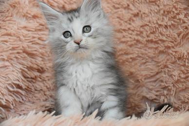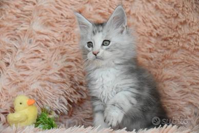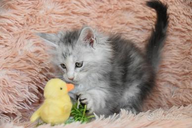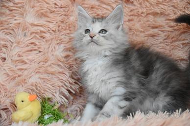 Abbiamo disponibile nel nostro allevamento dolce blu gattina di Maine coon che si chiama Amalia, è veramente bellissima e ha un mantello molto particolare! Nata da una combinazione di genetica molto bella lei è una gatta che diventerà enorme! viene ceduto da compagnia con pedigree riconosciuto afsi, passaggio di proprietà, doppia sverminazione, doppia vaccinazione, kit cucciolo, test genetici dei genitori, contratto di cessione e la nostra assistenza data 14anni di esperienza Facciamo trasporto gratuito nel raggio di 50km verso Bologna , verso Verona, verso Modena, Rovigo, verso Padova verso Mantova, possibile consegna gratuita su Milano e altri paesi e comunque con pet travel di fiducia in tutta italia Possibilità di pagamento rateale