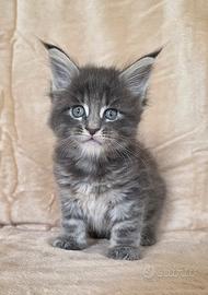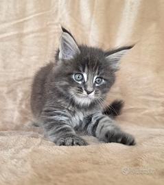 Elodie una dolcissima femminuccia maine coon blu tabby di un mese...tutta fusa e coccole...adora stare in braccio...può lasciare la mamma a fine aprile...viene ceduta con doppia sverminazione doppia vaccinazione passaggio di proprietà kit cucciolo garanzia sulle malattie ereditarie e pedigree afsi