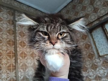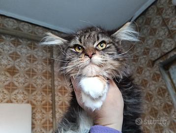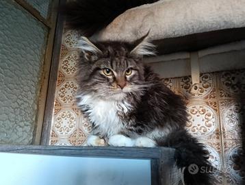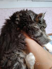 Disponibile da subito cucciolo Maine coon nella colorazione black tabby con bianco, nato l'8 di settembre da genitori HCM N/N ed esenti fiv e felv.