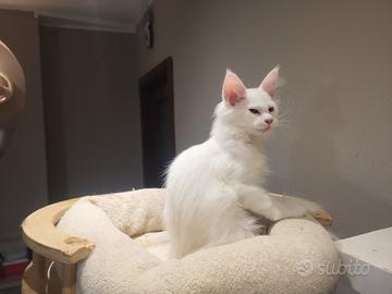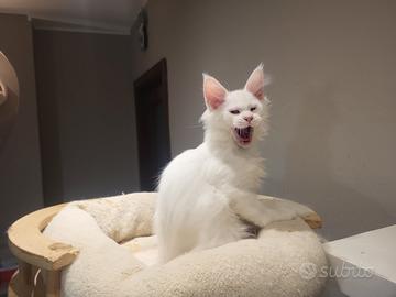 Bellissimo cucciolo di Maine coon bianco maschio di 3 mesi....già pronto per essere accolto in famiglia.Viene ceduto con libretto sanitario completo di doppia vaccinazione.Genitori visibili e con esami testati N/N.