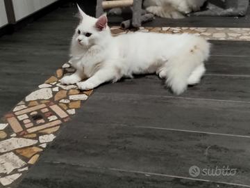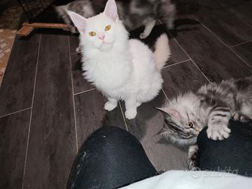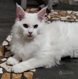 Disponibile ultimo cucciolo di Maine Coon Total White. Genitori visibili di proprietà.Il cucciolo verrà ceduto con libretto sanitario completo di doppia sverminazione e vaccini , pedigree da compagnia, abituato a lettiera e tiragraffi, a cani, simili .. vive in famiglia, molto dolce e affettuoso, ottimo carattere socievole e coccolone. Genitori testati geniticamente di proprietà esenti fiv felv hcm pkd ecocardio nella norma, esami feci periodico negativo per germi batteri e giardia, fiv , felv, coronavirus negativi. Disponibile subito, nato a fine novembre . Non in regalo . Possibilità di consegna personalmente. NO PERDITEMPO e CURIOSI.