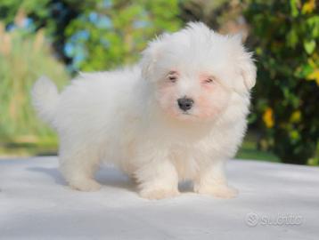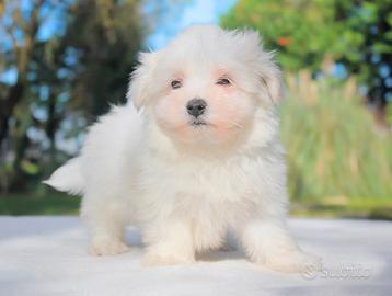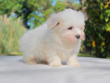 Pepito (nome indicativo) è questo tenerissimo cucciolo maschio di Maltese di 2 mesi di età, nato nel nostro allevamento. Con il manto bianco e lo sguardo dolce, è sempre pronto a seguire chi ama con devozione. È un cucciolo tranquillo e molto legato alla sua famiglia.