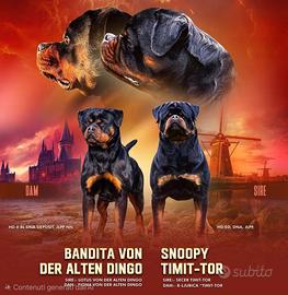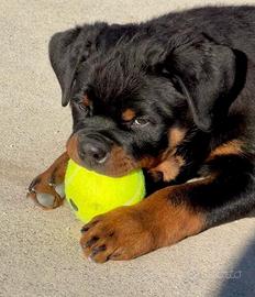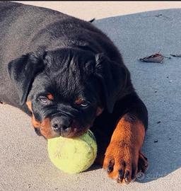 Bellissimo cucciolo rottweiler di 3 mesi, peso 18kg. Futura taglia grande, con vaccini, pedigree, microchip, certificato di buona salute. Figlio diretto di snoopy timit-tor. No perditempo.
