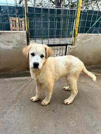 cucciolo di meticcio maremmano quattro mesi super dolce e affettuoso cerca casa, ed è rimasto solo in box perché i fratelli sono tutti a casa