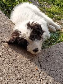 Vendesi cucciolo meticcio di futura taglia medio-grande, pelo lungo e mantello a macchie. Il cucciolo ha compiuto i 2 mesi di età ed è già sverminato e vaccinato (primo vaccino). Non conosco la razza dei genitori, quindi non è possibile definire con precisione l'incrocio. Per ulteriori informazioni o per fissare un appuntamento, contattatemi in privato.