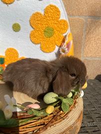 Cuccioli disponibili. Minilop colorazione cioccolato. Per maggiori informazioni scriveteci in privato. Possibilità di consegna in tutta Italia (Roma, Bari, Milano).