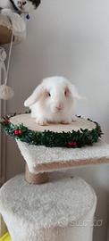 Adorabile Cucciolo Minilop nato in casa,abituato alle coccole cerca una famiglia... Bianco come la neve e occhi celesti come il cielo