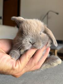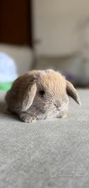 Vendo cucciolo di minilop, il coniglietto è nato il 10 novembre quindi è già pronto e svezzato per essere adottato. È molto tranquillo e giocherellone adatto anche con altri animali. Da adulto raggiunge circa 1,2kg ed è la razza più piccola rispetto all'ariete, nano o al testa di leone.