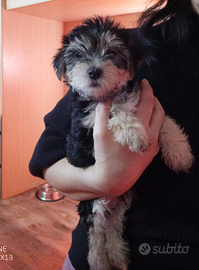 Disponibile da subito cucciolo di Morkie (yorky mamma+maltese papà) nato il 27 ottobre. Si chiama Caramello ha microchip primo vaccino esame feci e giardia negativi. Verrà ceduto con antiparassitari e crocchette. Attualmente peso circa kg 1.2. Futura taglia sui 5 kg massimo. Cresciuto in casa con bambini e altri cani. Lo stiamo abituando alla traversina, ma sarà un lavoro che dovrete portare avanti voi. Per info Mauro 3273834528 graditi messaggi WhatsApp.