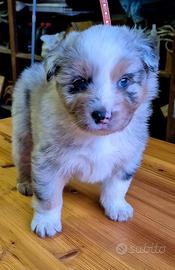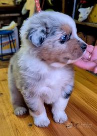 Bellissimo Cucciolo maschio blu merle di pastore australiano (australian shepherd) nato il 21 novembre sarà disponibili dal 20 gennaio con - vaccino - sverminazione - libretto sanitario - certificato di buona salute Le foto sono della mamma (blue merle) papà (red tricolor)