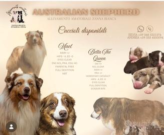 Bellissimo cucciolo di pastore australiano Red tricolor nbt di 65 giorni cerca la famiglia giusta per lui . Coccolone, giocherellone cerca un compagno di vita . Munito di : sverminazioni , vaccinazioni , visite veterinarie , puppy kit , pedigree roi . Microchip . Genitori visibili , lastrati anche e gomito , test genetici , visita ufficiale agli occhi , deposito DNA , pedigree roi . X info Andrea 3334350594