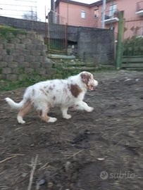 Vendo ultimo cucciolo maschio di pastore australiano con pedigree, red merle con entrambi gli occhi azzurri, il cucciolo è nato il 18.09.25 ed è disponibile da subito.
