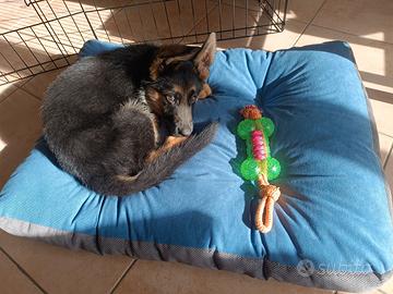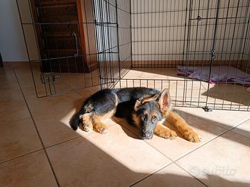 Pastore tedesco maschio di 97 giorni, puro 100%, di allevamento riconosciuto ENCI FCI, selezionato, ottima genealogia, genitori con pedigree esenti displasie, bellissimo, due vaccini fatti, cerca nuova famiglia.
