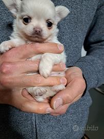 Meraviglioso cucciolo di chihuahua bianco pelo lungo nato il 25 gennaio prenotabile da allevamento amatoriale da oltre 10 anni.il cucciolo al momento non presenta diffetti e ha gia le orecchie dritte il cucciolo ha una taglia e piccola e ha un buon carattere.verra ceduto con prassi sanitaria con vaccini e pedigree enci.su richiesta anche video del piccolo