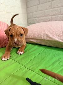 Regalo ultimo cucciolo di Pitbull red nose, nato dalla mia coppia di genitori. Il cucciolo è nato il 20/11/2025, e sverminato e ha già iniziato lo svezzamento con puppy, prima visita veterinaria già effettuata. I 200€ richiesti sono per il rimborso spese