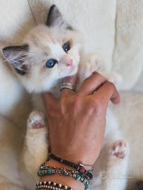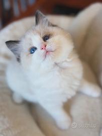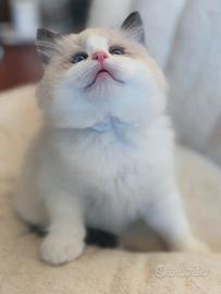 Disponibile per la prenotazione OSLO , cucciolo Ragdoll Seal bicolor con pedigree ANFI nato il 25/02/2026 presso il nostro allevamento amatoriale riconosciuto My Galaxies . Marking perfetto,meraviglioso con occhi blu ,con carattere molto dolce e giocherellone. Tutti i nostri cuccioli verranno ceduti con regolare contratto di Cessione dai 90 giorni di vita completi di libretto sanitario con sverminazioni, vaccinazioni, microchip, certificato di buona salute e pedigree ANFI. I genitori sono entrambi gruppo sanguigno A e muniti di test genetici PKD, HCM , FIV FELV negativi . I cuccioli sono nati e cresciuti in casa con amore e dedizione , abituati alle coccole e pronti per donare gioia alle nuove famiglie future .