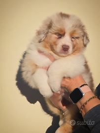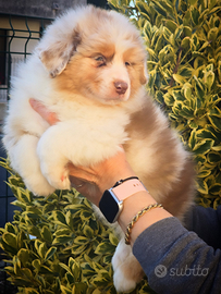 Disponibile cucciolo maschio red merle coda corta naturale di pastore australiano con pedigree ENCI/FCI. Il cucciolo é in pronta consegna, nato il 21 novembre 2025.