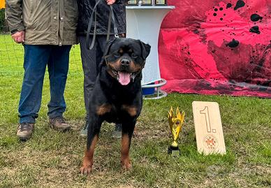 Disponibile splendido cucciolo di Rottweiler maschio di 2 mesi, nato da una prestigiosa selezione morfologica e caratteriale.