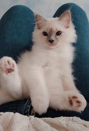 Nell'allevamento Bastet Miw è attualmente disponibile uno splendido cucciolo Sacro di Birmania, nella colorazione blu point, nato il 22 dicembre e disponibile dai primi di aprile. Verrà ceduto munito di libretto sanitario, doppia vaccinazione trivalente, certificato di buona salute, microchip, pedigree, passaggio di proprietà e abituato all'uso della lettiera e del tiragraffi. Bastet Miw è un allevamento riconosciuto ANFI e specializzato nella razza dei gatti Sacro di Birmania. Ogni cucciolo viene allevato in un ambiente amorevole e stimolante, e preparato per essere un compagno ideale per la sua futura famiglia. Se stai pensando di accogliere un Sacro di Birmania nella tua vita, Bastet Miw potrebbe essere l'allevamento giusto per iniziare la tua avventura felina. Per maggiori informazioni, contattare il numero 347/6720363, ma solo se realmente interessati, grazie. Melinda