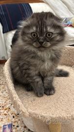Vendo cucciolo di scottish fold longhair nato il 18 gennaio. Educato alla lettiera e al tiragraffi; gran mangione... Figlio di genitori sani, testati fiv/felv, la madre anche per le patologie cardiache.