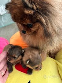 Disponibili per metà Maggio due maschietti di spitz tedesco nano. Si cedono con Pedigree ENCI vaccini corredino. In foto sono con la mamma, il papà è della stessa tipologia della mamma. Entrambi ottimi pedigree. Nati in casa crescono accuditi non sono mai da soli. Gradito contatto whatsapp si possono visitare per chi è seriamente interessato, foto video genitori/cuccioli disponibili provatamente. Grazie