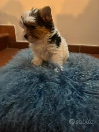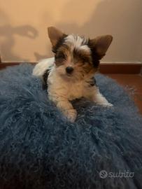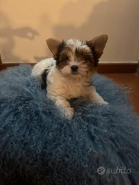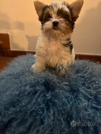 Cucciolo maschio di Yorkshire Biewer di 2 mesi, di taglia molto piccola (genitori visibili) cerca una famiglia amorevole.
