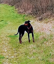 Cedo femmina di dobermann di 9 mesi sanissima,giocherellona abituata in casa con bambini e altri animali,vaccinata libretto sanitario e cip,prima regalarla valutiamo chi la prende (no commercianti)