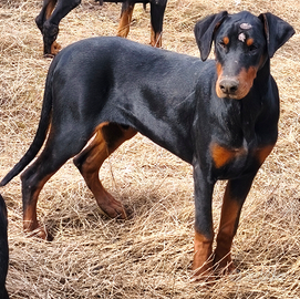 E' disponibile cucciolone di Dobermann, nato il giorno 11 agosto. E' ceduto con pedigree; libretto sanitario riportante le vaccinazioni e le sverminazioni. Ha inoltre il certificato dell'esame del DNA che ne attesta i parentali. Ha un buon carattere, è equilibrato. Inoltre e abituato a vivere all'esterno.