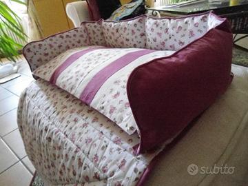 culla per il vostro meraviglioso amore, prodotto artigianalmente , con tessuti puro cotone, misura del cuscino di seduta 58 x 31, misura del tappetino 53 x 48, posso realizzarlo anche con tessuti e colori diversi, misure diverse, pezzo unico.