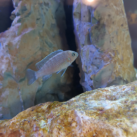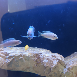 Cedo solo assieme, maschio dominante di Cynotilapia zebroides cobue con 3 femmine tutti di circa 6 cm.