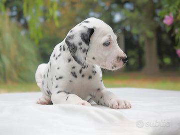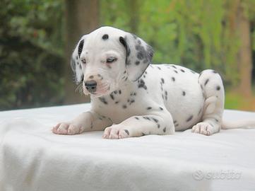 Disponibile questo bellissimo cucciolo maschio di Dalmata di 2 mesi di età. Si chiama Corky (nome indicativo) e ha un mantello bianco con macchie nere che raccontano la storia unica di ogni Dalmata. Giocherellone, allegro e pieno di vita, sarà un compagno instancabile e affettuoso.