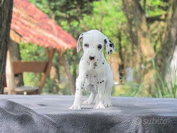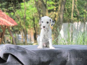 MEcco a voi questo bellissimo cucciolo di Dalmata bianco pieno di macchioline nere. Maschietto di 2 mesi di età pronto a trasferirsi in una nuova famiglia. Si chiama Flay (nome indicativo). Un cucciolo amorevole che adora giocare durante le giornate. Si accorgerà subito quando avrete bisogno di coccole.