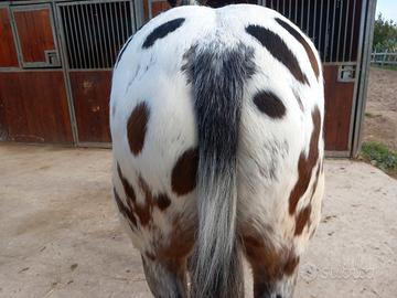 cavallo danese 8 anni, incrocio appaloosa, bellissimo, ottimo per lunghi trekking, bravissimo, facile da montare e da gestire, qualsiasi prova e visita veterinaria.