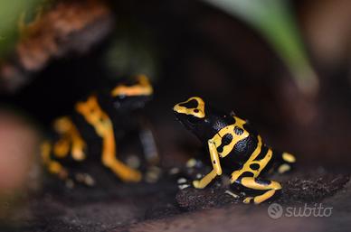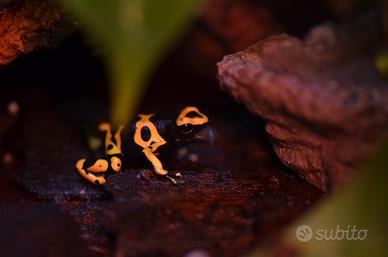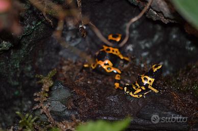 Cedo a malincuore le mie dendrobates, purtroppo in qualche mese dovrò lasciarle per mancanza di spazio. 2 maschi di dentrobates leuromelas di 4 e 2 anni (venduti) 1 femmina di dendrobates leuromelas di 4 anni (fertile e attiva, depone regolarmente le uova.(venduta) 1 terribilis probabile maschio ma non sicuro di 3 anni (non in foto ma su richiesta appena riesco gli faccio una bella foto) Prezzo 40 euro per i maschi e 50 per la femmina. Chiaramente con CITIES. Cedo anche un terrario bioattivo da 30 x 30 x45.(non per dendrobates) Prezzo da concordare. No perditempo e neofiti. Solo persone seriamente interessate e che ci tengono. La coppia maschio femmina le ho allevate personalmente da quando hanno un anno e ci sono molto affezionato.