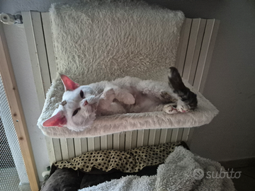 È uno splendido gattone riccio e morbido come il cotone,al posto di miagolare "pigola" come un pulcino.