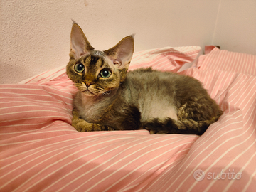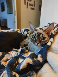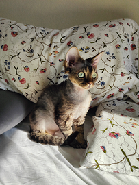 Presso l'allevamento amatoriale "Lo Zaffiro" è ancora in cerca di casa un cucciolone maschio di Devon Rex colore black tabby di nome Sairon. Sairon oltre ad essere bellissimo ha un ottimo carattere è abituato alla convivenza con altri gatti, con i cani e con i bambini e vive dalla nascita in un contesto famigliare. I genitori sono testati anche per malattie genetiche. Entrambi i genitori sono visibili. Viene ceduto completamente vaccinato, con esami feci negativi (anche giardia)ha il microchip e il pedigree. Viene ceduto con contratto.