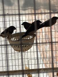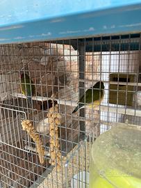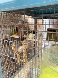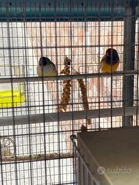 Vendo copia di diamante del gould più 5 passeri giapponesi, compreso ampia gabbia divisa in due settori , compresa di accessori come in foto. Dimensioni gabbia Altezza 160 cm. Larghezza 60cm. Profondità 50cm. Tutto in blocco!