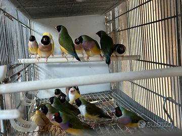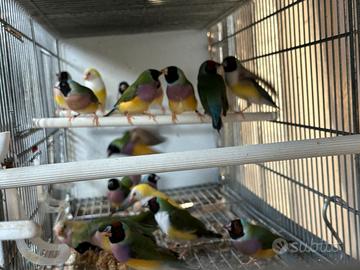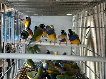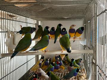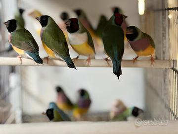 Vendo uccellini femmine di diamante di Gould ancestrale, varie colorazioni: petto viola petto bianco testa nera testa rossa anno 2024/2025