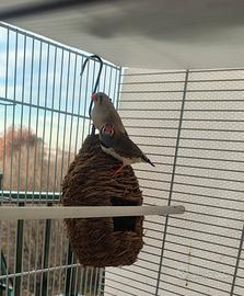 Vendo coppia di diamante mandarino maschio & femmina , maschio colorazione classica e femmina beige di circa un anno ; coppia molto attiva , riproduttiva di circa un anno... In vendita con 1 nido in uso e 1 nido nuovo ed abituata a vivere esternamente tutto l'anno.