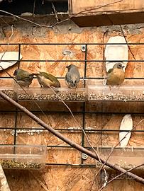 Sono allevati in colonia in una voliera esterna 2x3 dove possono sviluppare una muscolatura adeguata e un comportamento adatto per la riproduzione in purezza dei futuri soggetti.