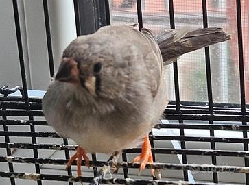 Cedo diamantini mandarini puli perché troppi sono 1 femmine marrone con ali bianche pezzata/scudata un maschio pezzato grigio bianco (fratello della pezzata marrone) e una femmina grigia in fase di mutamento becco e piume in corso (non imparentata con i 2 pezzati)... 7 euro caduno.