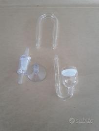 ceramica bianca, una curva ad "U" per evitare inestetiche curve e scongiurare pieghe che possanoostacolare il flusso del gas ed inoltre un'ottima valvola unidirezionale detta anche valvola di nonritorno per evitare che una volta esauritasi l'anidiride carbonica, l'acqua della vasca siriversi pereffetto della legge dei vasi comunicanti. Realizzata in resistente policarbonato trasparente èsigillata e non smontabile con all'interno l'elemento in silicone .