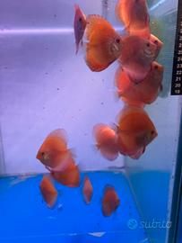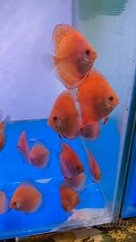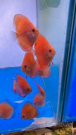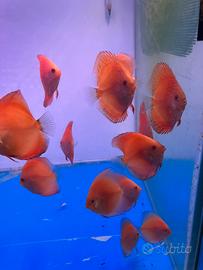 Vendo bellissimi discus Red del mio allevamento di 10/11 cm a 62 euro l'uno. Sono in accrescimento in acqua di rubinetto ed abituati a mangiare tutto: secco (granulare e artemia liofilizzata) e congelato (pastone, chironomus ed artemia) Non spedisco.