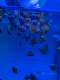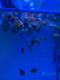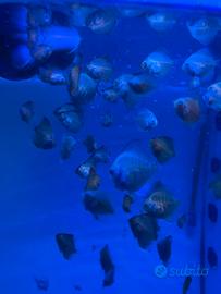 Vendo piccoli discus del mio allevamento di varie tipologie di 4, 5, e 6 settimane a 8, 10 e 12 euro l'uno. Sono in accrescimento in acqua di rubinetto e mangiano prevalentemente pastone per discus (che faccio io e se volete lo potete prendere da me), artemia salina e stanno iniziando a mangiare granulato fine. Acquisto minimo 5 esemplari, non spedisco solo ritiro a mano.